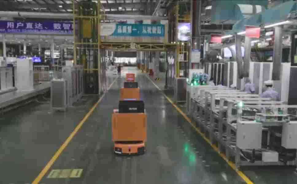 为车载冰箱物流配送打造的智能解决方案,,,,包含产中物流通过潜伏举升AMR搬运至线边,,,,产后成品物流智能仓储,,,,流程包含产中物流智能齐套入库,,,线边安灯叫料AMR智能配送至线边,,,成品入库、、出库,,,,通过无人堆高车机器人,,智能仓储管理替代人工作业管理,,,实现更高存储、、更高效率、、、更具柔性化的解决方案。。。。